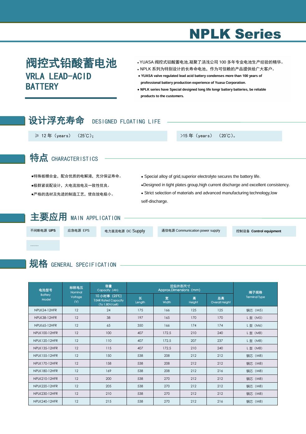 NPL系列有多種型號電池供選擇,作為可信賴的產(chǎn)品提供給廣大客戶。